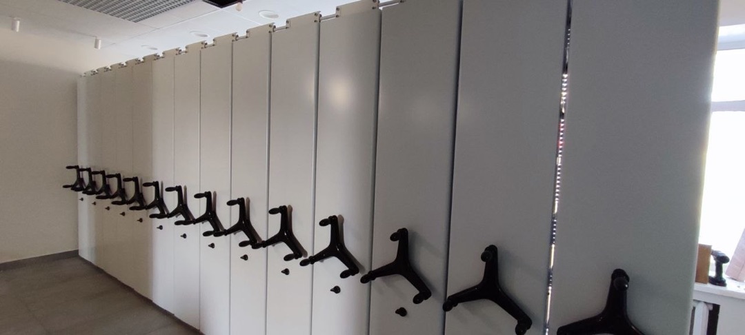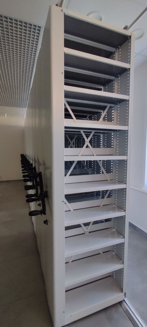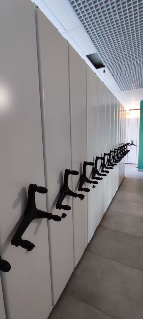 Комплекс из 130 мобильных стеллажей для архива документов клинической больницы
