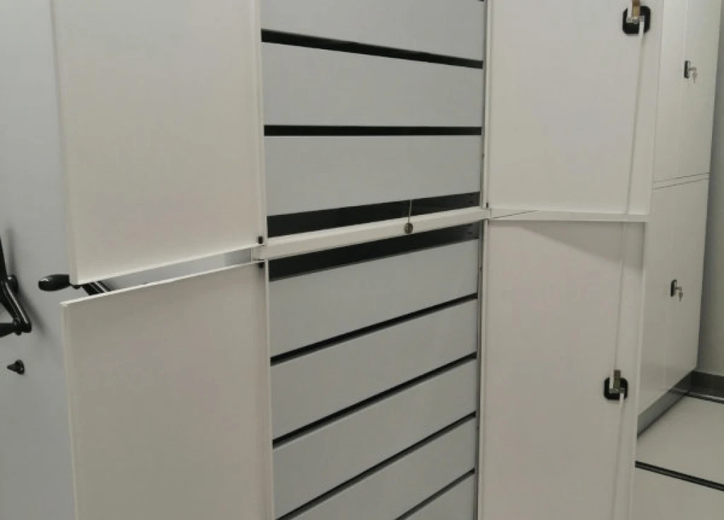 Стеллажи металлические закрытого типа с дверцами и замками позволяют ограничить доступ к хранимым документам.